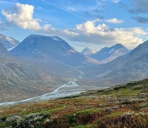 Nere i dalen är det oftast mjuka och snälla fjällstigar men desto högre upp vi kommer blir det allt mer stenigt och kargt. En stor del av toppturen kommer vara i stening terräng.