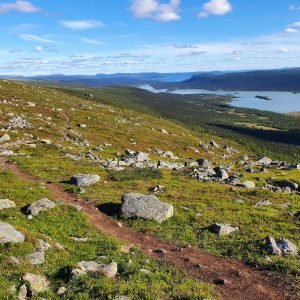Höjdpunkten under resan är bestigningen av berget Skierfe, där klippväggen reser sig nästan lodrätt 700 meter över Rapadalens delta nere i dalbotten. Här blickar vi djupt in i hjärtat av Sarek och tar in skönheten, en bild som kommer finnas kvar i minnet för resten av våra liv.